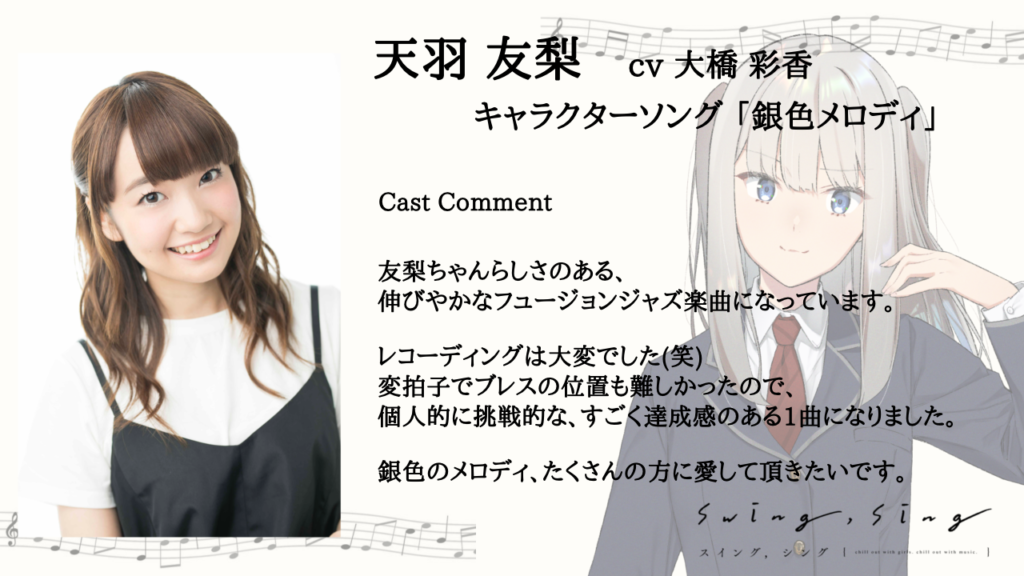 そして、「銀色メロディ」リリースを記念して天羽 友梨役を演じる大橋彩香さんからコメントをいただきました。