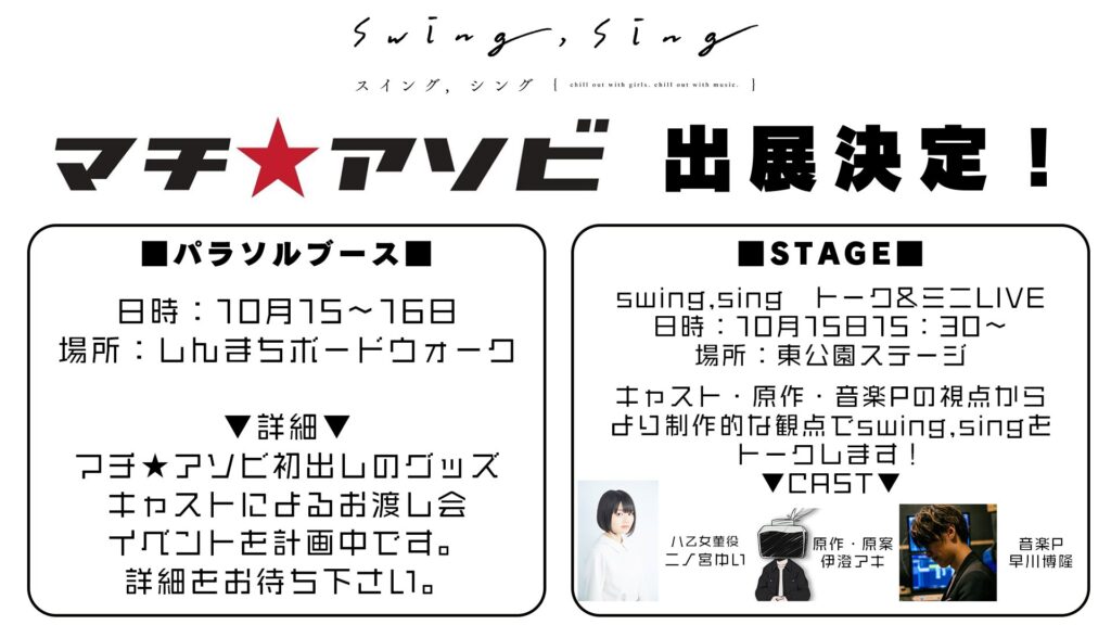 2022年10月15日(土)16日(日)、徳島県で開催されるマチ★アソビvol.25にswing,singが出展します!
