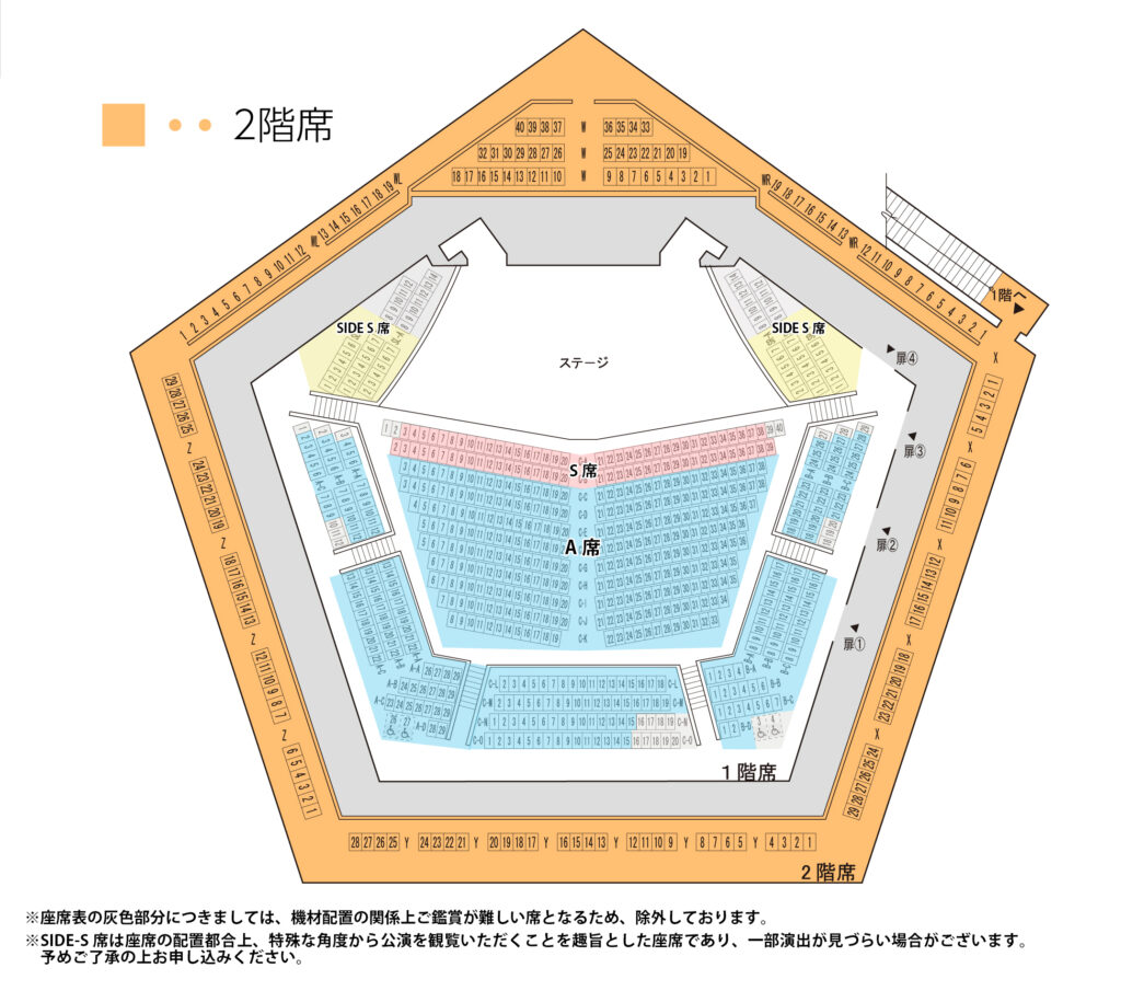 ※SIDE-S席は座席の配置都合上、特殊な角度から公演を観覧いただくことを趣旨とした座席であり、一部演出が見づらい場合がございます。